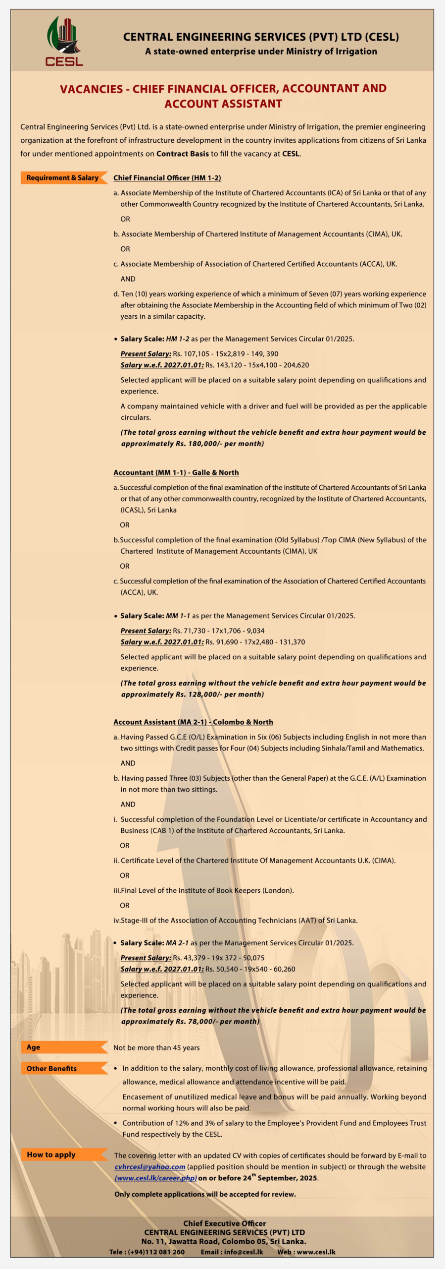 16.09.2025 – Vacancies in Central Engineering Services (Pvt) Ltd