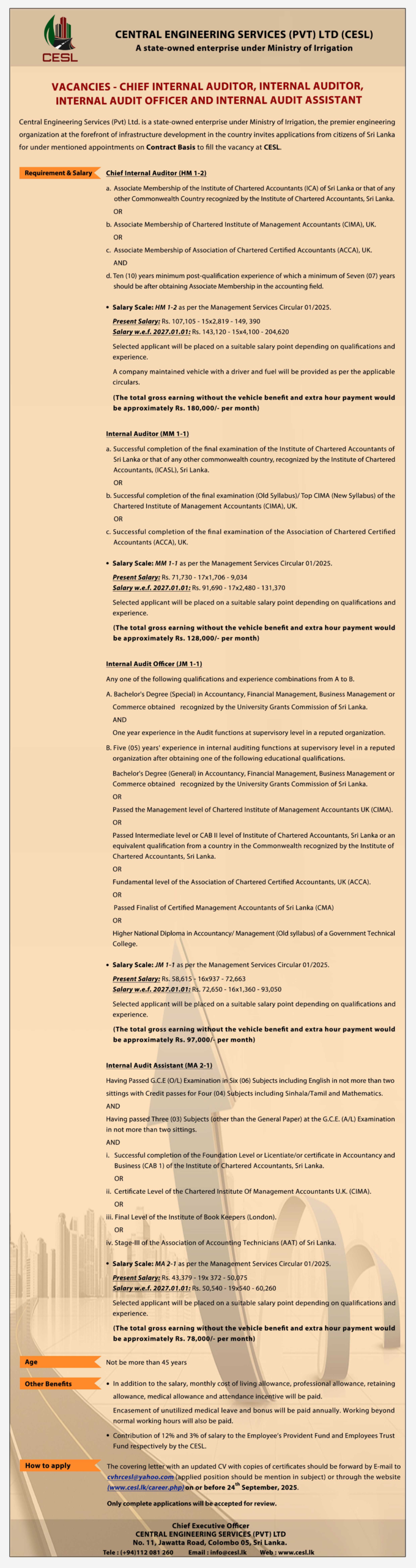 16.09.2025 – Vacancies in Central Engineering Services (Pvt) Ltd