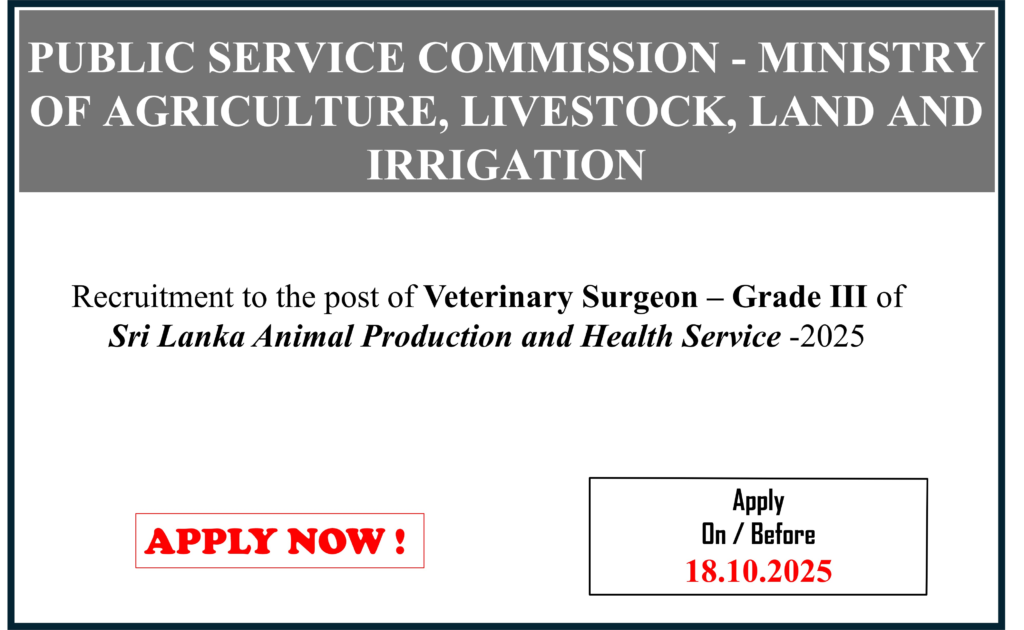 23.09.2025 – Recruitment to the post of Veterinary Surgeon – Grade III of Sri Lanka Animal Production and Health Service -2025