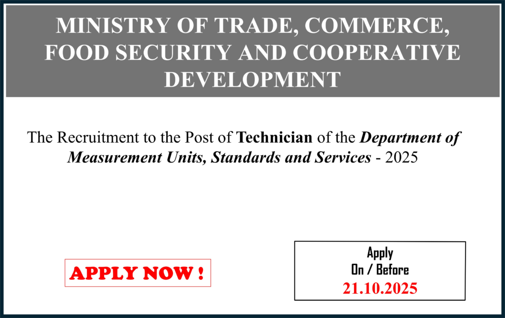 23.09.2025 – The Recruitment to the Post of Technician of the Department of Measurement Units, Standards and Services – 2025
